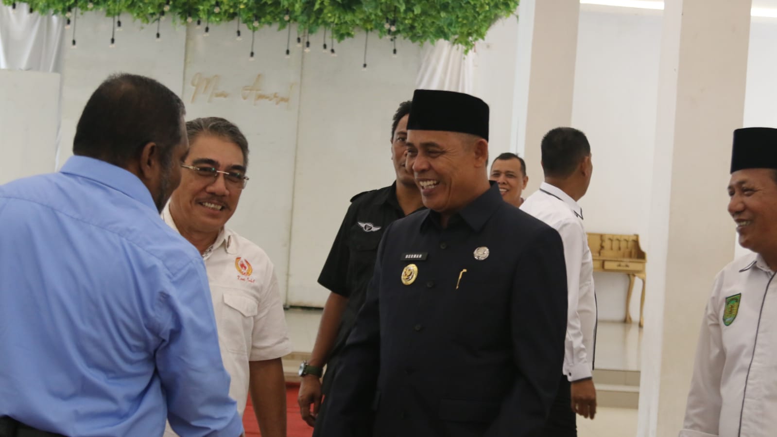 Bupati Indragiri Hilir (Inhil) Herman, buka resmi Rapat Kerja Komite Olahraga Nasional Indonesia (KONI) Inhil, yang berlangsung Senin (8/12) pagi, di Gedung Puri Cendana.