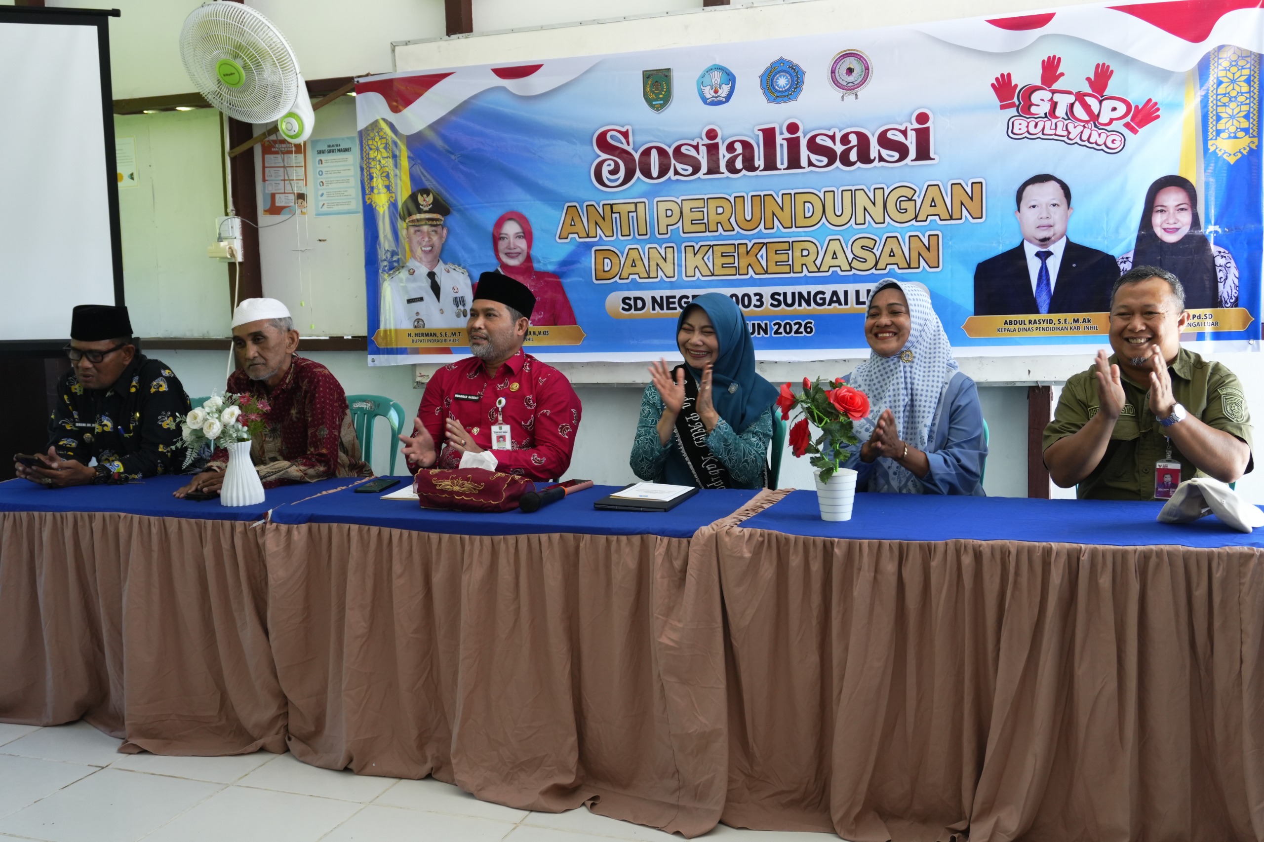 Batang Tuaka – Pemerintah Kabupaten Indragiri Hilir (Inhil) terus menunjukkan komitmennya dalam menciptakan lingkungan pendidikan yang aman dan ramah anak. Hal tersebut ditunjukkan melalui kegiatan sosialisasi anti perundungan dan kekerasan yang digelar di SD Negeri 003 Sungai Luar, Kecamatan Batang Tuaka, Kamis (12/3/2026).