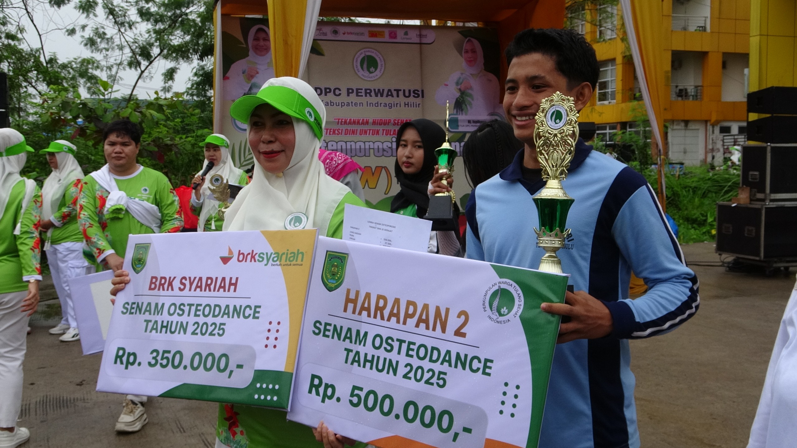 Selain rangkaian sosialisasi dan edukasi, acara ini juga diramaikan dengan penyerahan hadiah kepada pemenang lomba Osteodance yang digelar sehari sebelumnya. Penyerahan hadiah dilakukan oleh Asisten II Setda Inhil bersama Ketua DPC Perwatusi Kabupaten Inhil.