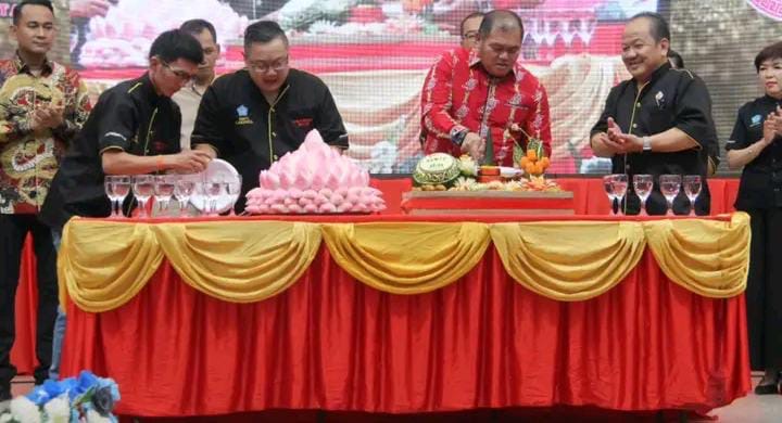 Acara kemudian ditutup dengan perayaan HUT PSMTI ke-26 yang ditandai dengan pemotongan tumpeng oleh Bupati Indragiri Hilir dan kanpei bersama seluruh pengurus dan tamu undangan sebagai tanda syukur, perayaan, atau simbol kebersamaan.