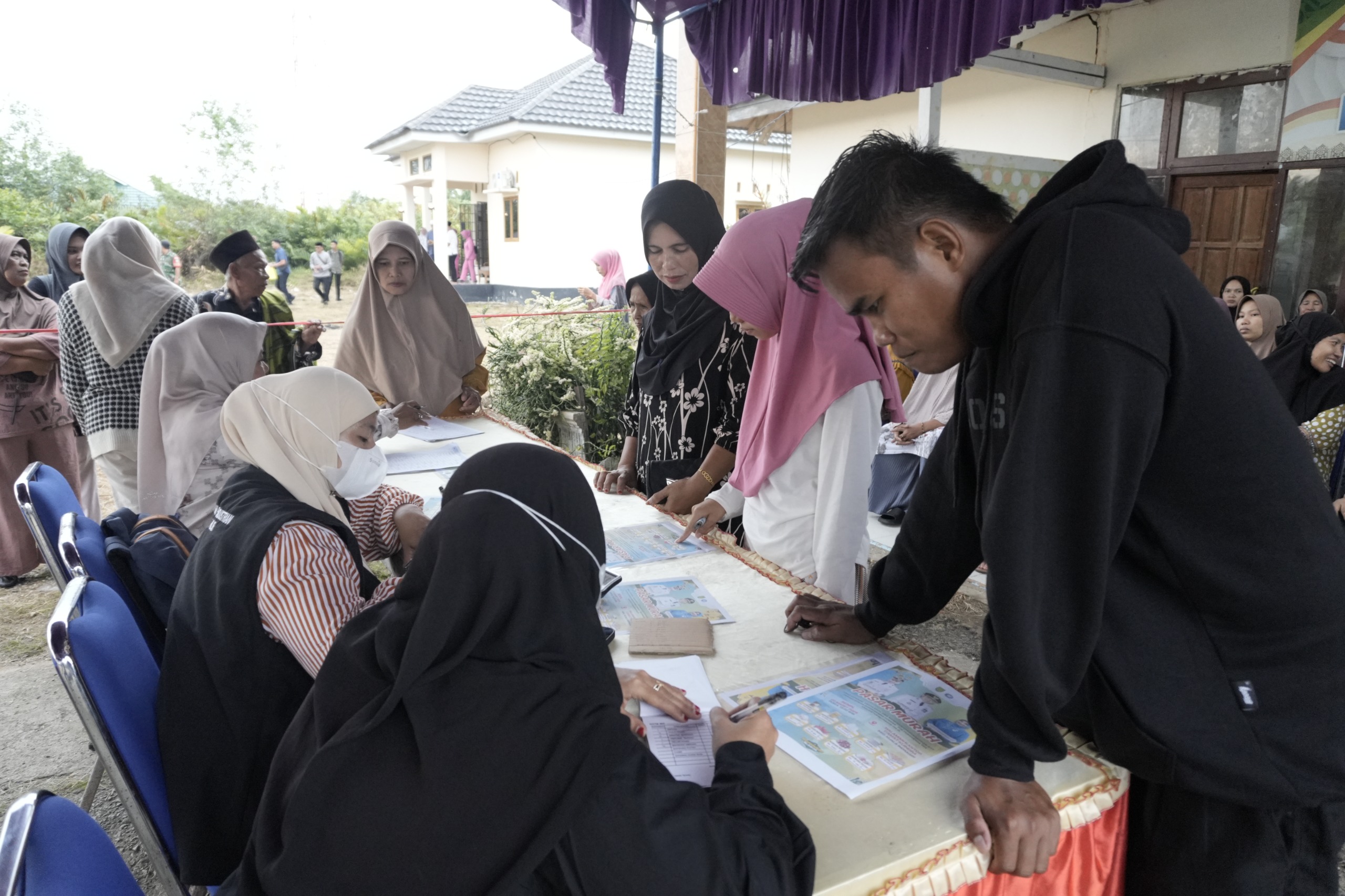 Puluhan masyarakat kelurahan Sapat tampak antusias, memadati pasar murah yang menyediakan berbagai kebutuhan pokok seperti telur ayam, beras, gula dan minyak kemasan, yang dijual dengan harga di bawah standar pasar.