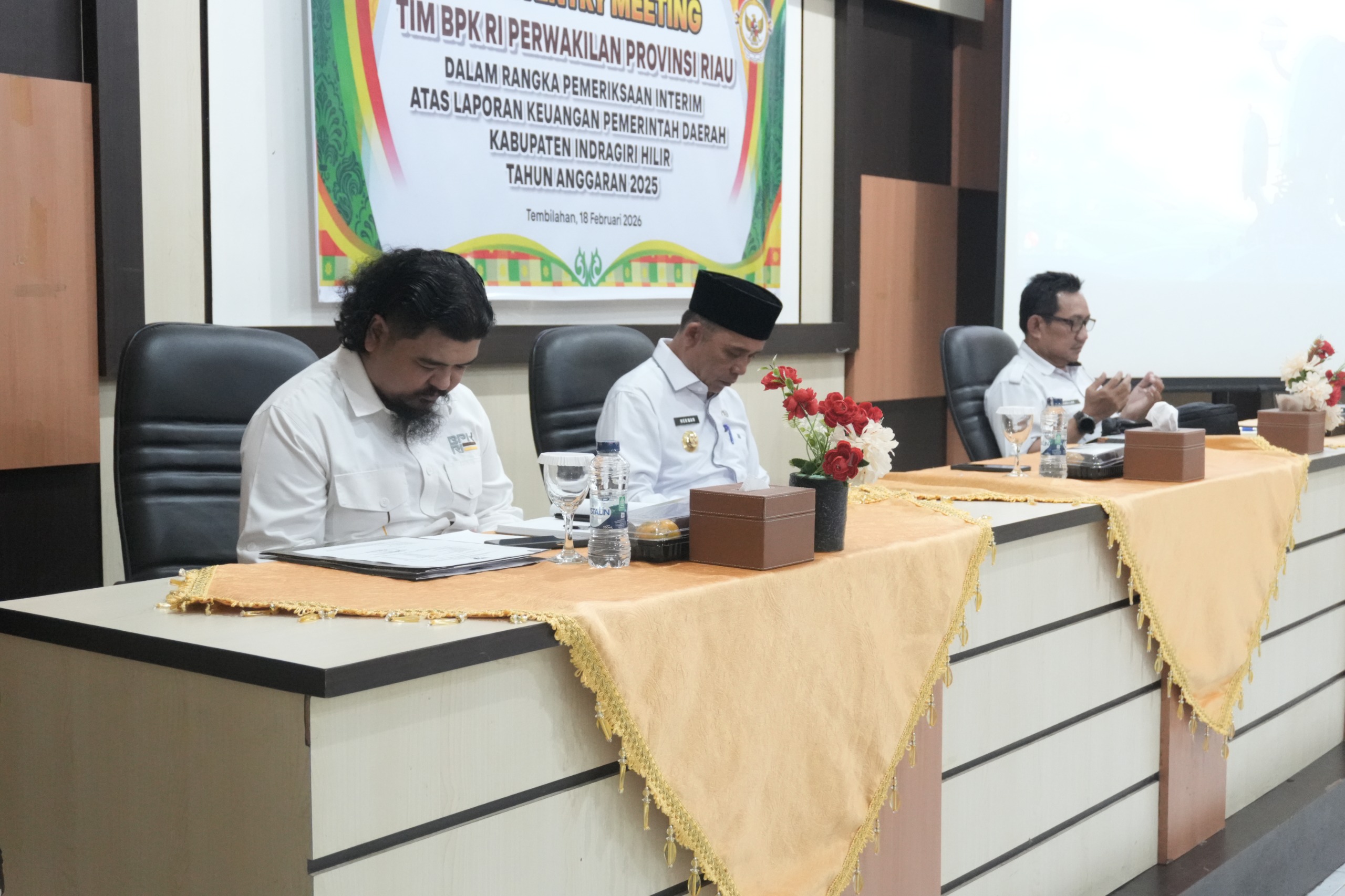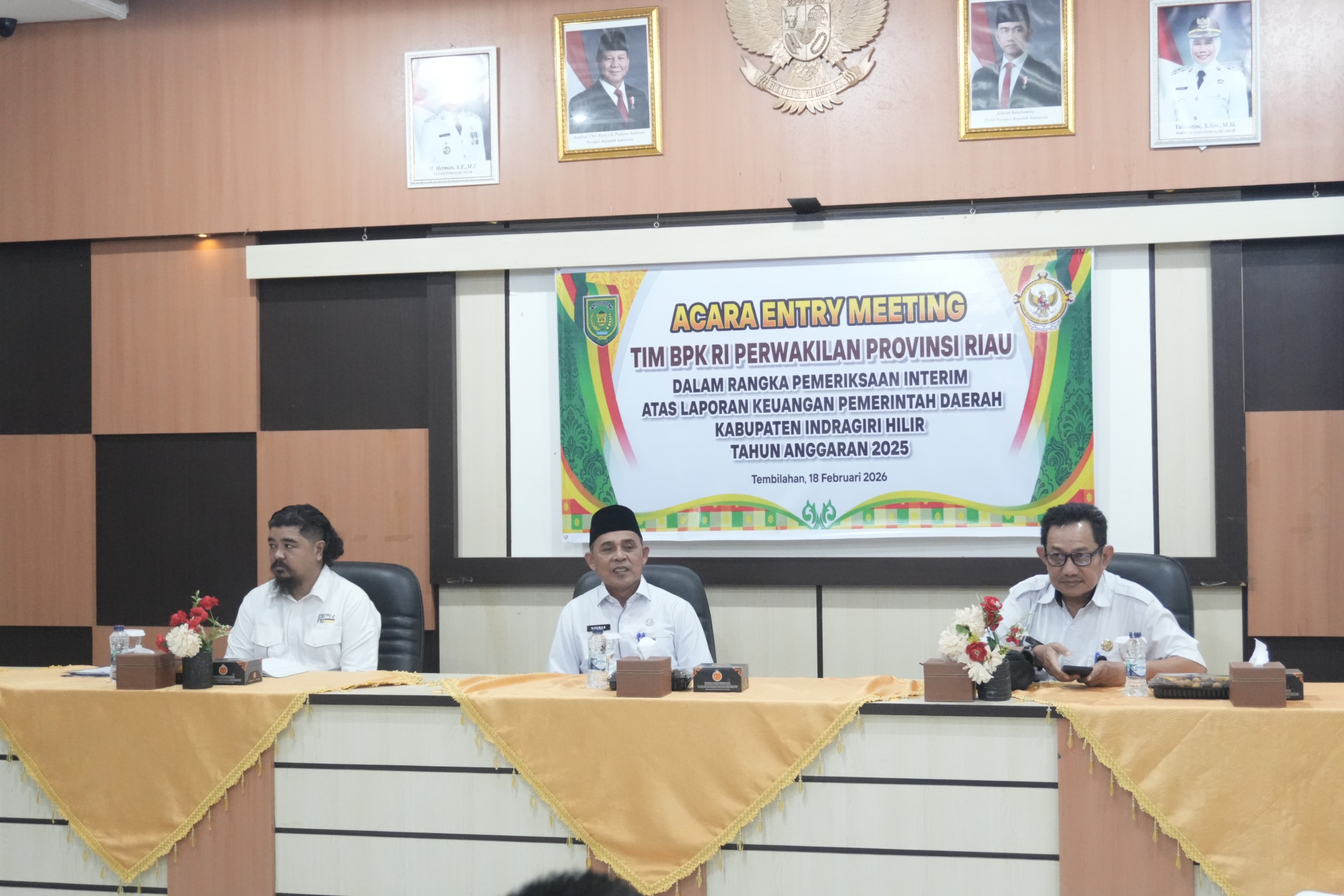 Tembilahan – Bupati Indragiri Hilir Herman menegaskan seluruh kepala perangkat daerah hingga bendahara wajib berada di tempat dan tidak melakukan perjalanan ke luar daerah selama proses Pemeriksaan Interim Badan Pemeriksa Keuangan (BPK) berlangsung. Penegasan tersebut disampaikan saat membuka Entry Meeting Pemeriksaan Interim atas Laporan Keuangan Pemerintah Daerah (LKPD) Kabupaten Indragiri Hilir Tahun Anggaran 2025, Rabu (18/2/2026), di Aula Bapperida Inhil, Jl. Akasia, Tembilahan.