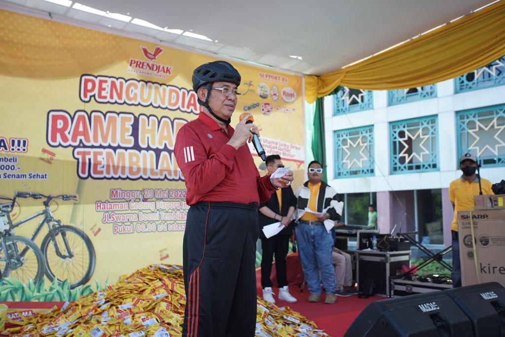 "Oleh karena itu, saya atas nama Pemerintah Kabupaten Indragiri Hilir sangat mengapresiasi dilaksanakanya acara gowes dan senam sehat dalam rangka pengundian hadiah teh prendjak Tembilahan ini," ucap Bupati .