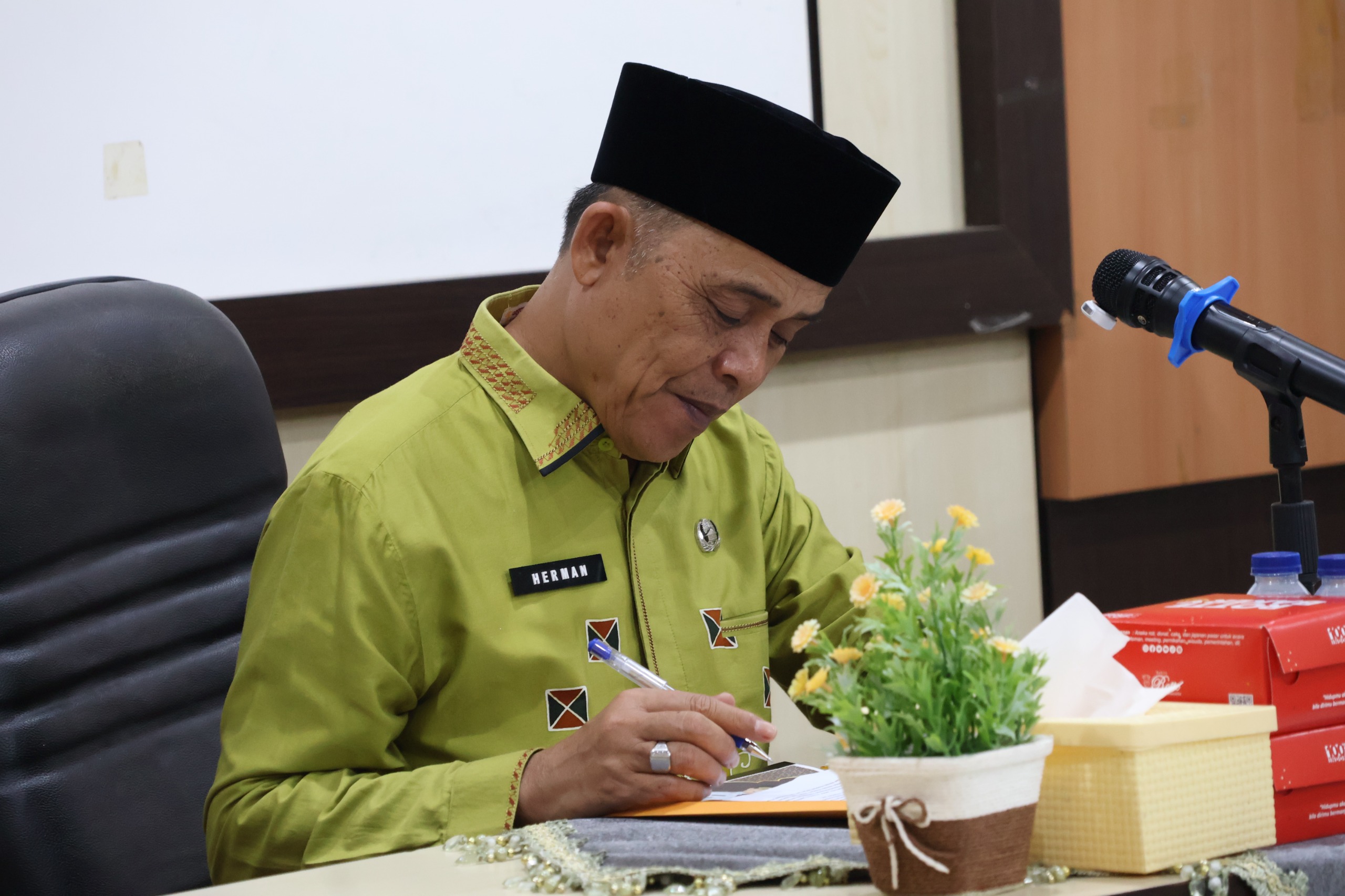 Bupati H. Herman menegaskan bahwa evaluasi realisasi fisik dan keuangan tahun 2026 difokuskan pada percepatan pembangunan infrastruktur, dengan mendorong peningkatan dukungan anggaran dari pemerintah pusat guna memperkuat sektor pertanian serta mobilitas masyarakat.
