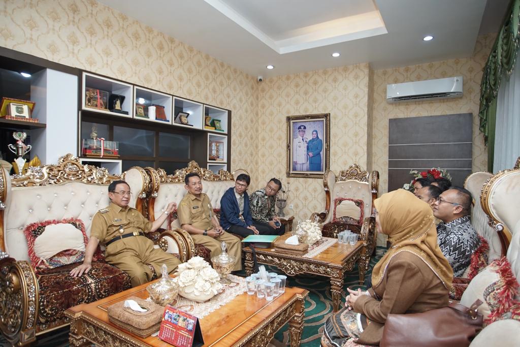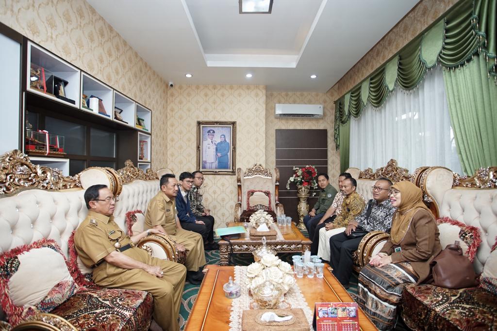 Bupati Indragiri Hilir HM. Wardan, sambut kedatangan Kepala Kantor Pelayanan Kekayaan Negara Dan Lelang (KPKNL) Pekanbaru Maulina Fahmilita dan jajaran. Penyambutan berlangsung pada Selasa (17/1) di kediaman dinas bupati.
