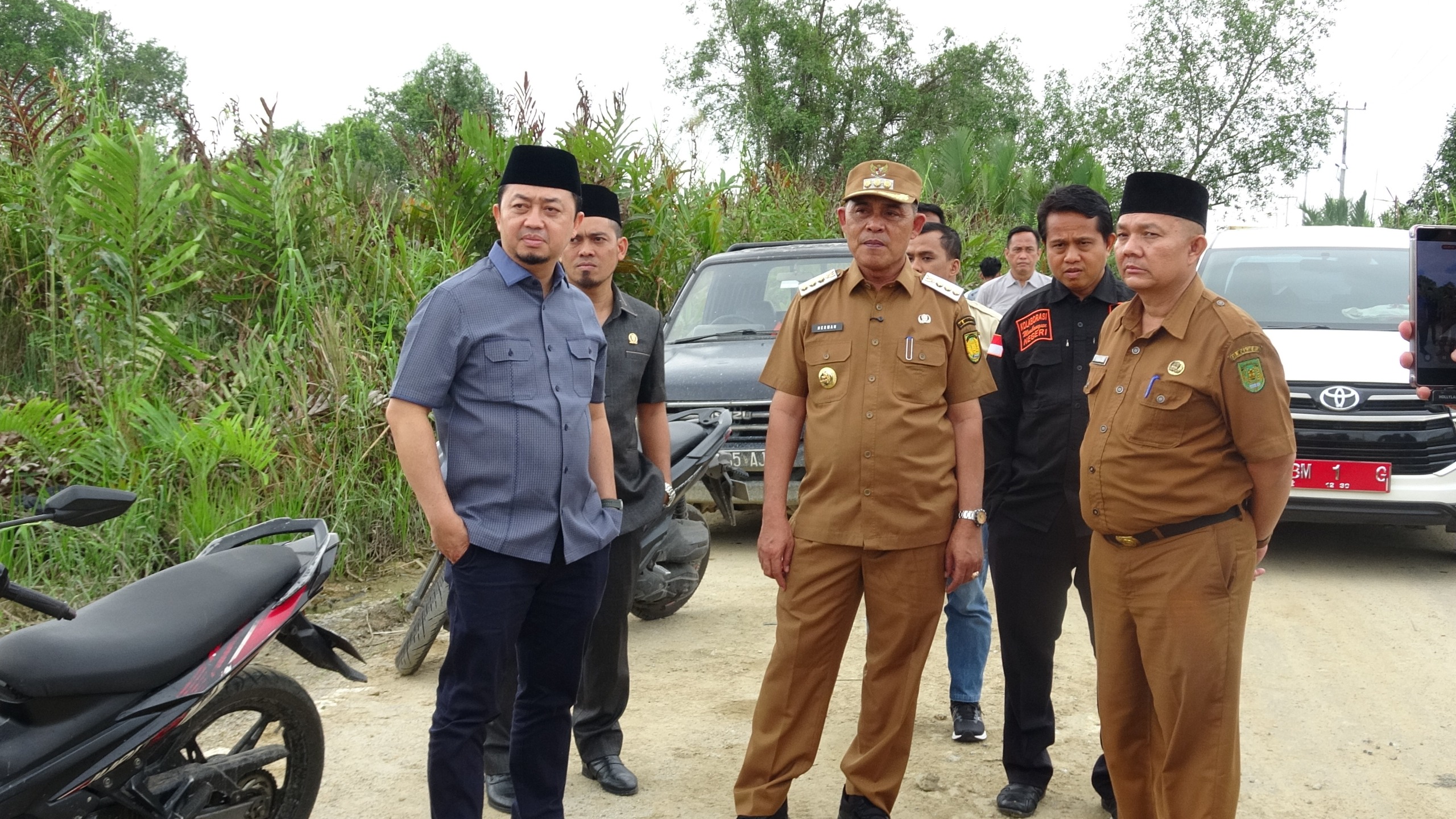 Bupati Indragiri Hilir (Inhil) Herman bersama anggota DPR RI, Syahrul Aidi Maazat, tinjau pengerjan Jalan Terusan Mas, Senin (29/12).