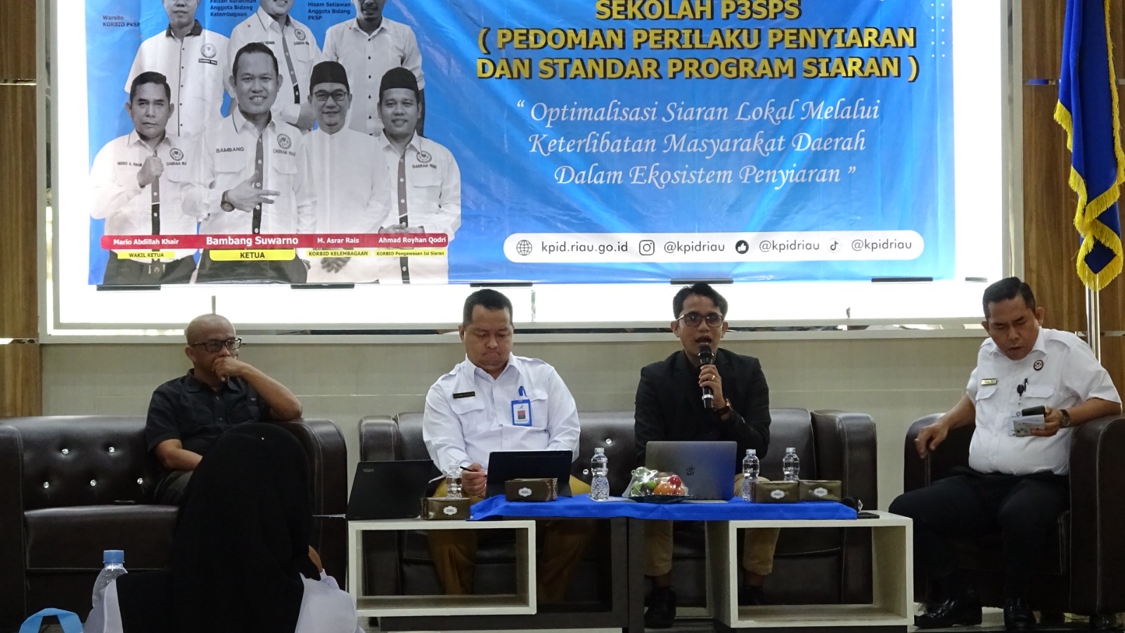 Menyelenggarakan Sekolah P3SPS, Ketua KPID Riau Bambang Suwarno, sampaikan pentingnya sosialisasi ini bagi LPPL sebagai sumber informasi daerah.