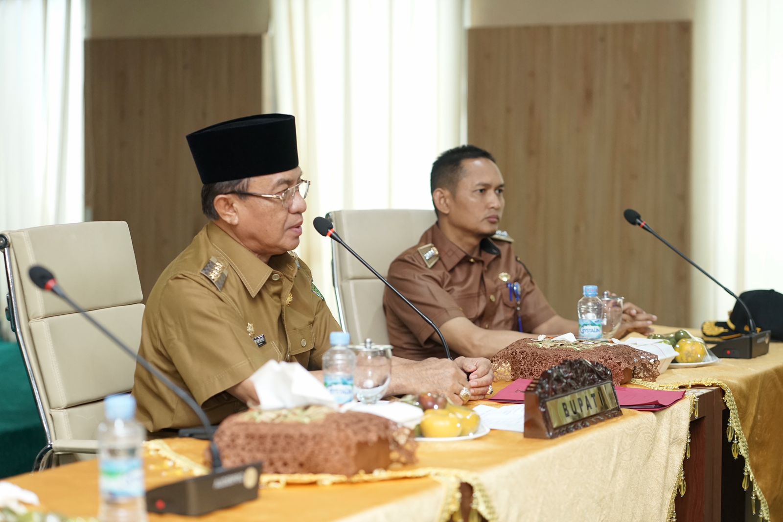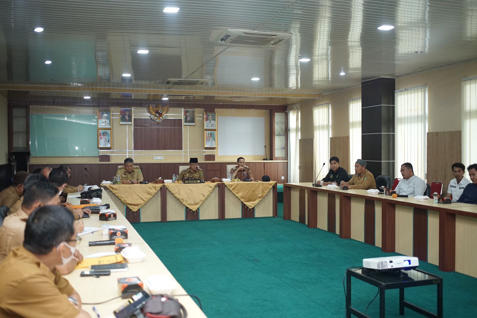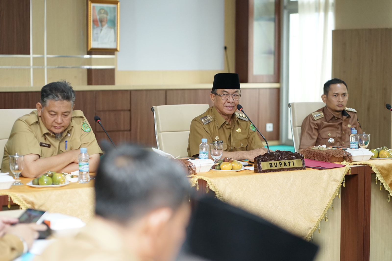 TEMBILAHAN INHIL,- Dengan hangat, Bupati Indragiri Hilir (Inhil) Drs HM Wardan MP menyambut kedatangan Camat Keritang dan kepala desa Kuala Keritang serta perwakilan desa Keritang dan kepala desa pasar kembang guna melaksanakan diskusi intensif guna mengatasi permasalah banjir yang sedang di alami oleh masyarakat kecamatan Keritang khusus nya desa Kuala Keritang, Bertempat di Ruang Rapat Lantai 5 kantor Bupati Inhil, Selasa (15/11)
