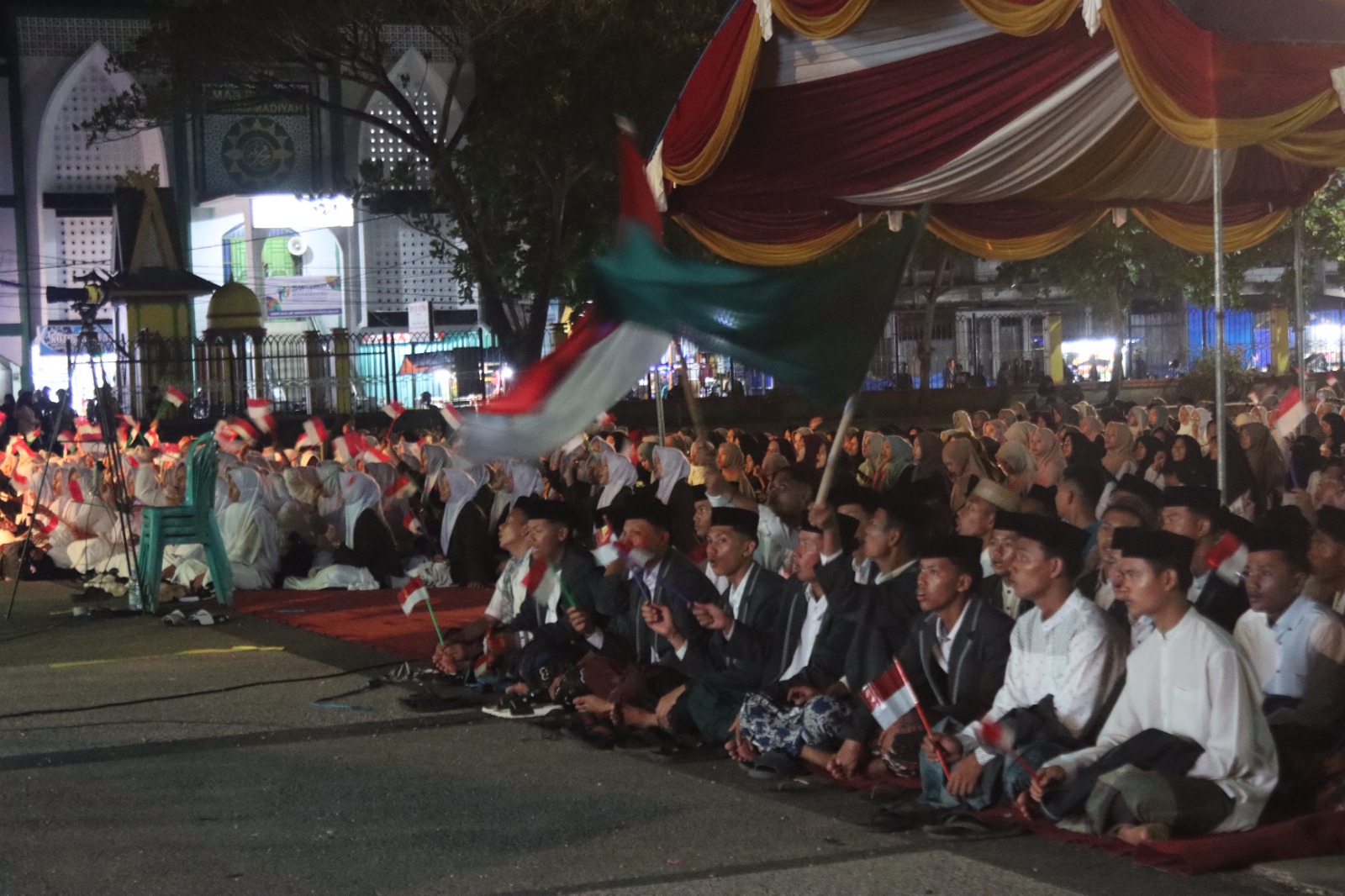 Acara keagaaman yang digelar di Lapangan Gajah Mada Tembilahan pada Selasa (4/11) malam ini, dihadiri alim ulama, Unsur Forkopimda, pejabat Pemkab Inhil, Tokoh Masyarakat, para santri dan jemaah yang hendak berselawat bersama serta mendengar tausiah dari Ustadz Efendi LC.
