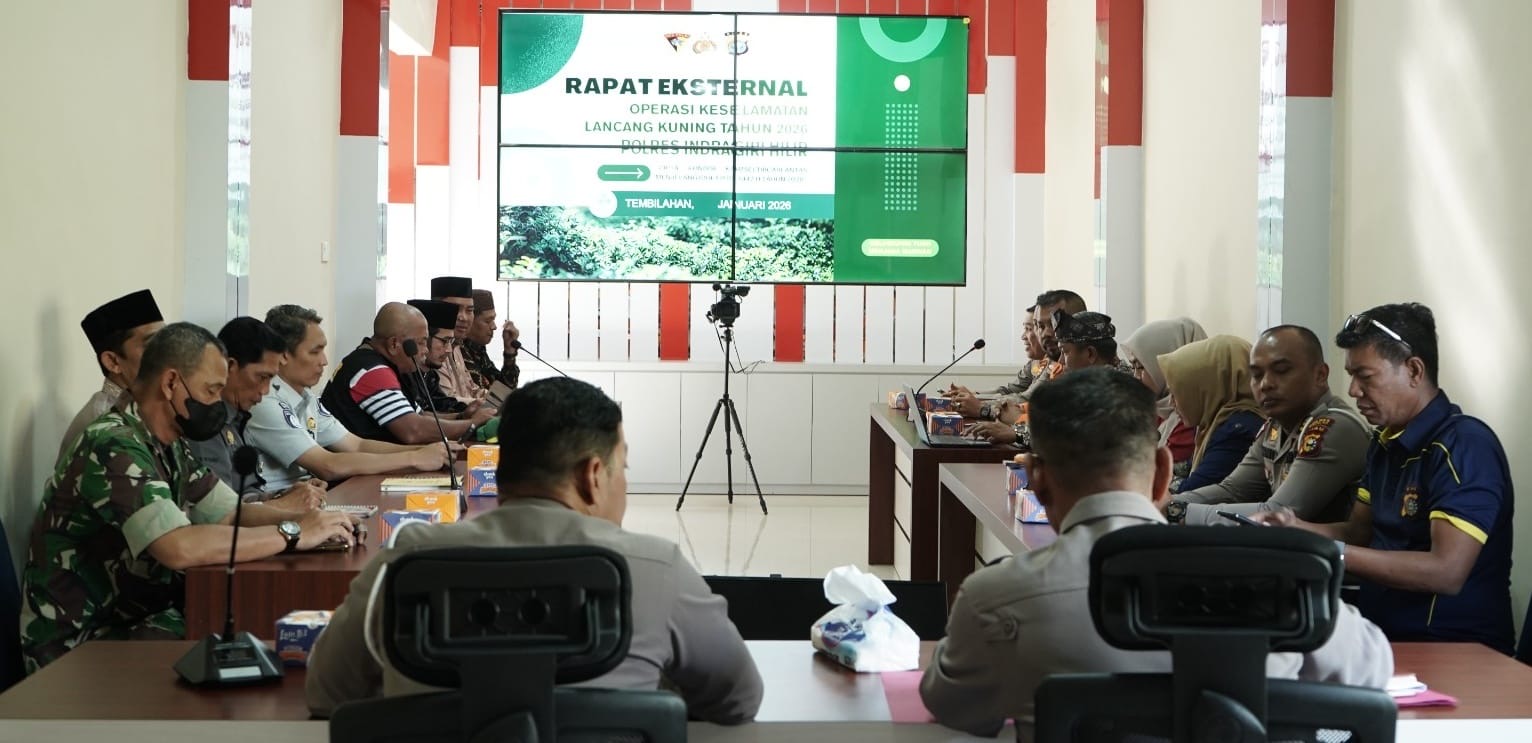 Tembilahan, (30/1/2026) – Polres Indragiri Hilir menggelar rapat koordinasi lintas sektoral kesiapan Operasi Kepolisian Bidang Lalu Lintas dengan sandi “Keselamatan Lancang Kuning 2026” dalam rangka menciptakan kondisi keamanan, keselamatan, ketertiban, dan kelancaran lalu lintas (kamseltibcarlantas) menjelang Hari Raya Idul Fitri 1447 Hijriah/2026 Masehi. Kegiatan tersebut dilaksanakan di Mapolres Indragiri Hilir, Jumat 30 Januari 2026.
