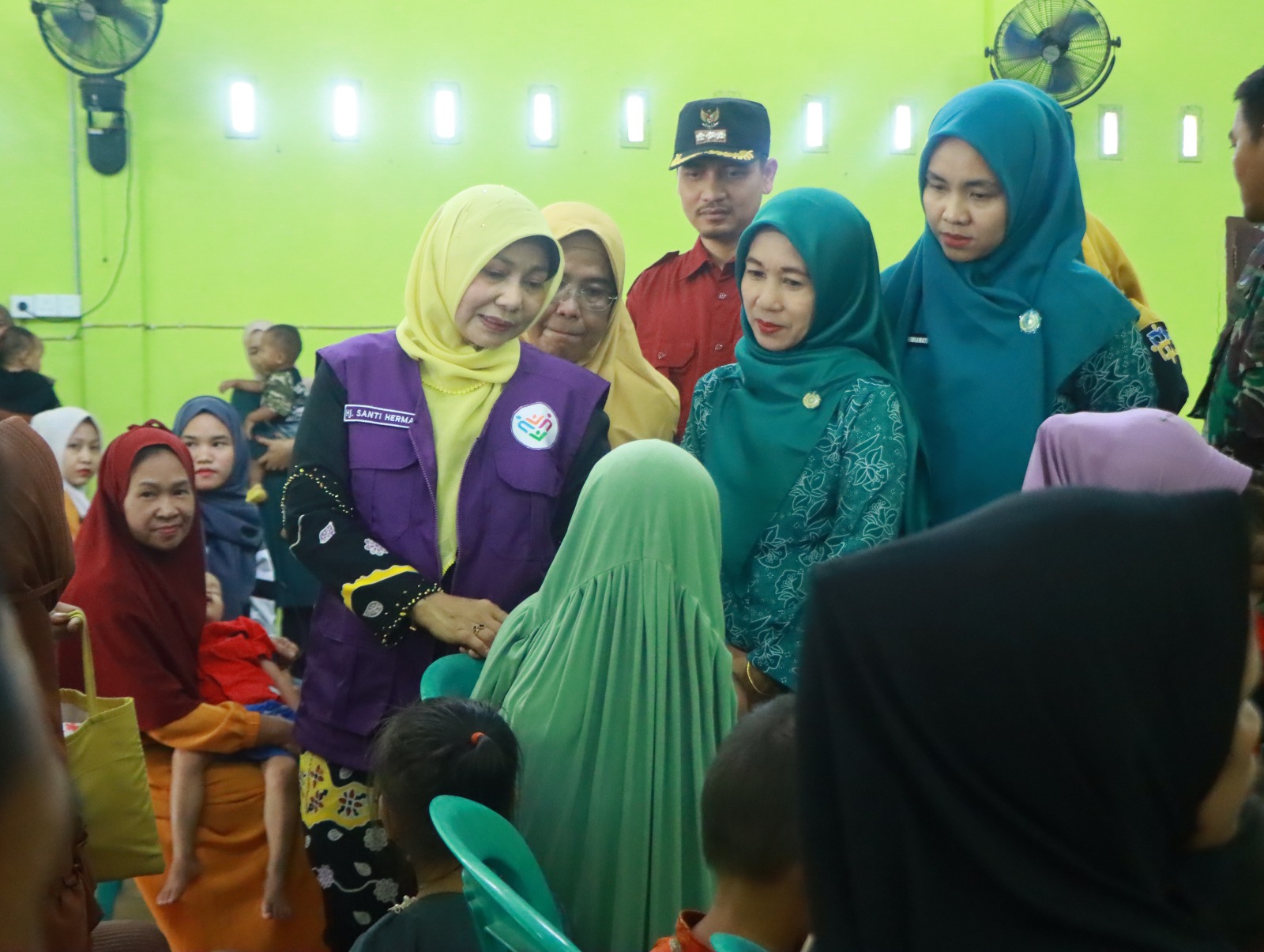 Dalam momen tersebut, Ketua TP PKK Inhil juga menyerahkan telur kepada para peserta sebagai bentuk dukungan pemenuhan gizi keluarga. Tidak hanya itu, Katerina Susanti turut berdialog secara langsung dan santai dengan para peserta, bahkan mendatangi satu per satu peserta di tempat duduk mereka untuk mendengar langsung kondisi dan kebutuhan yang dihadapi.