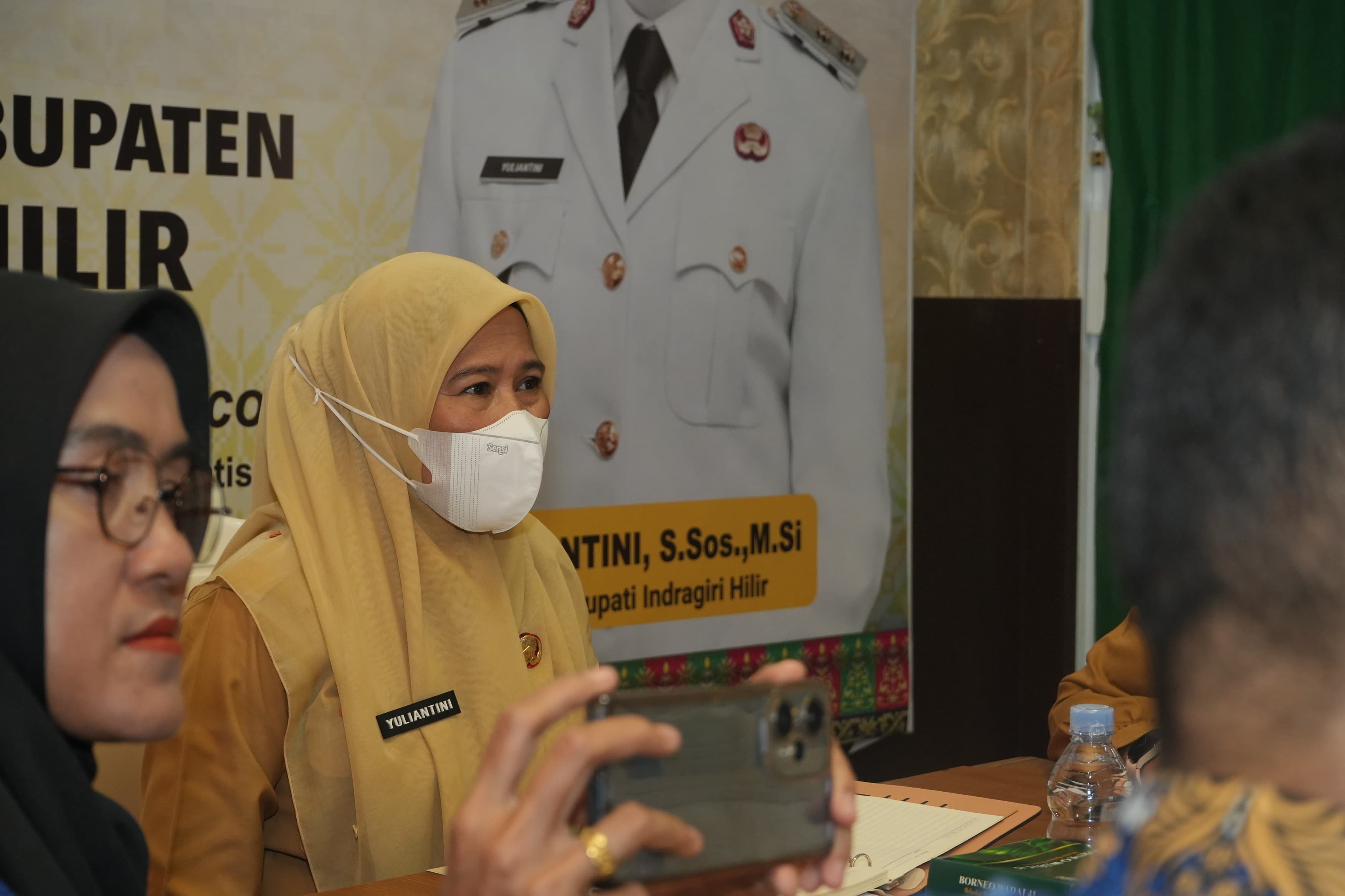 Wakil Bupati Indragiri Hilir (Inhil) Yuliantini, yang juga memegang amanah sebagai Ketua Tim Percepatan Penanganan Stunting (TPPS), ikuti pertemuan virtual bersama Kementerian Kesehatan dan seluruh TPPS se Indonesia.