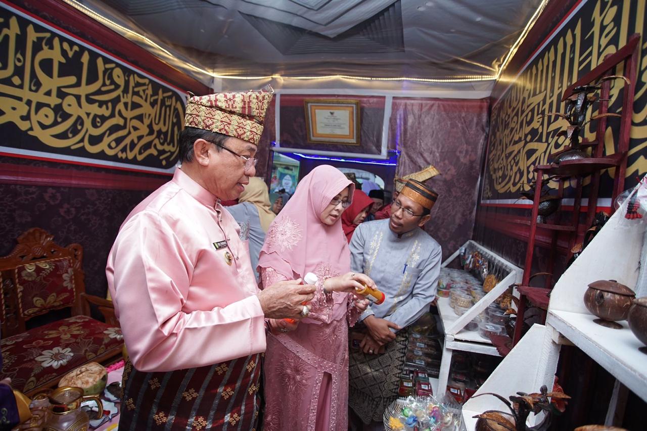 Setelah Melepas peserta Pawai Takruf, Bupati Inhil HM WARDAN didampingi Ketua TP PKK Inhil Hj.Zulaikhah bersama unsur OPD Pemkab Inhil dan Camat keritang, membuka Stand Bazar dan meninjau secara langsung hasil olahan makanan serta hasil tampilan kerajinan dari 17 Desa dan Kelurahan serta stand ibu-ibu bhayangkari.