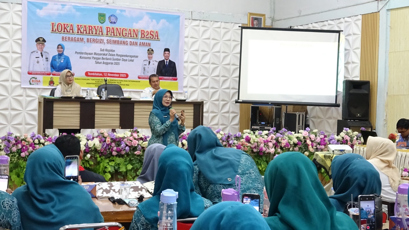 Mendorong tumbuhnya kesadaran masyarakat untuk mengonsumsi makanan yang Beragam, Bergizi, Seimbang dan Aman (B2SA), Pemerintah Kabupaten Indragiri Hilir (Inhil) melalui Dinas Pangan, Tanaman Pangan, Holtikultura dan Peternakan (DPTPHP) bersama Tim Penggerak PKK gelar Loka Karya Pangan B2SA.