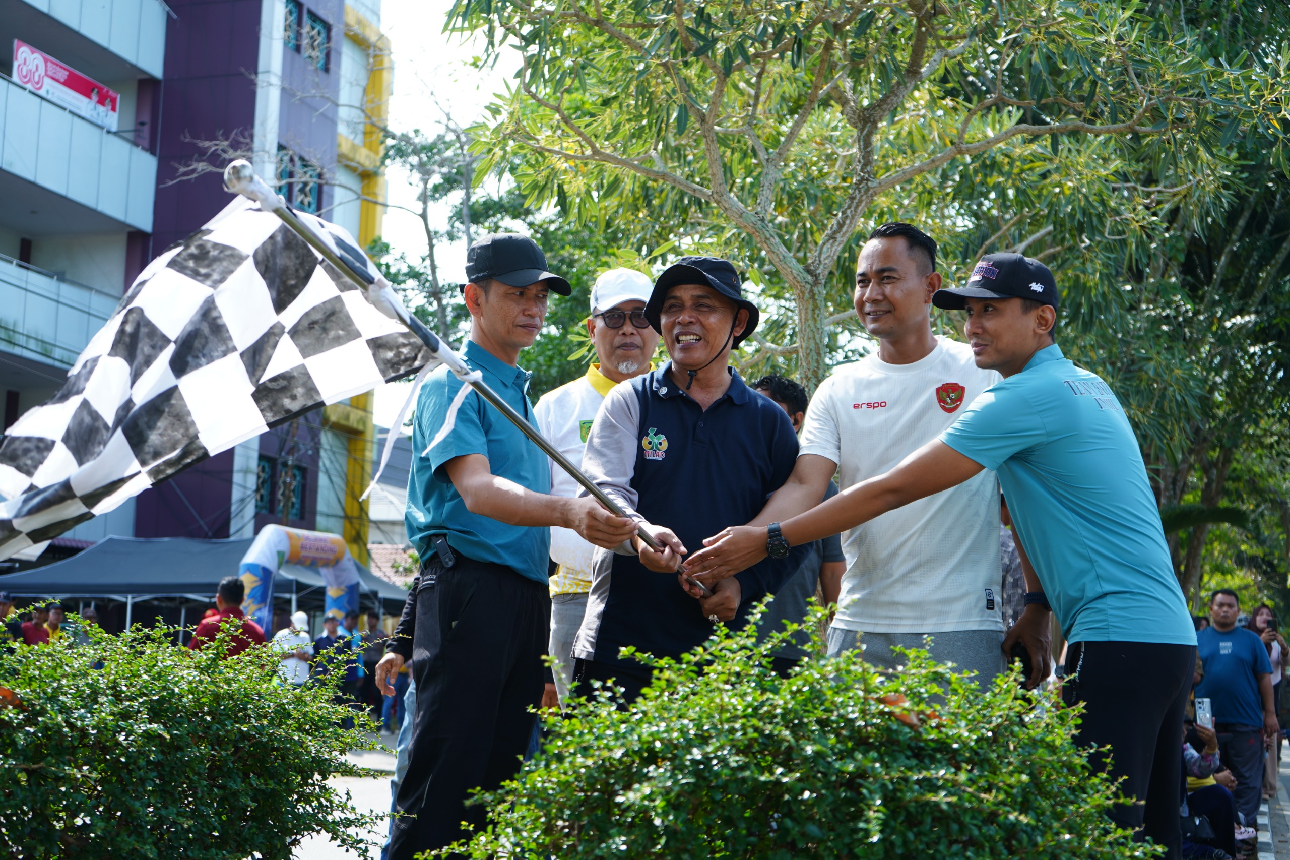 Menjadi tanda dimulainya perlombaan yang berlangsung Sabtu (18/10) pagi di Jalan Swarna Bumi ini, Bupati Inhil Herman bersama Forkopimda dan Sekda, melepas peserta dengan pengibaran bendera start.