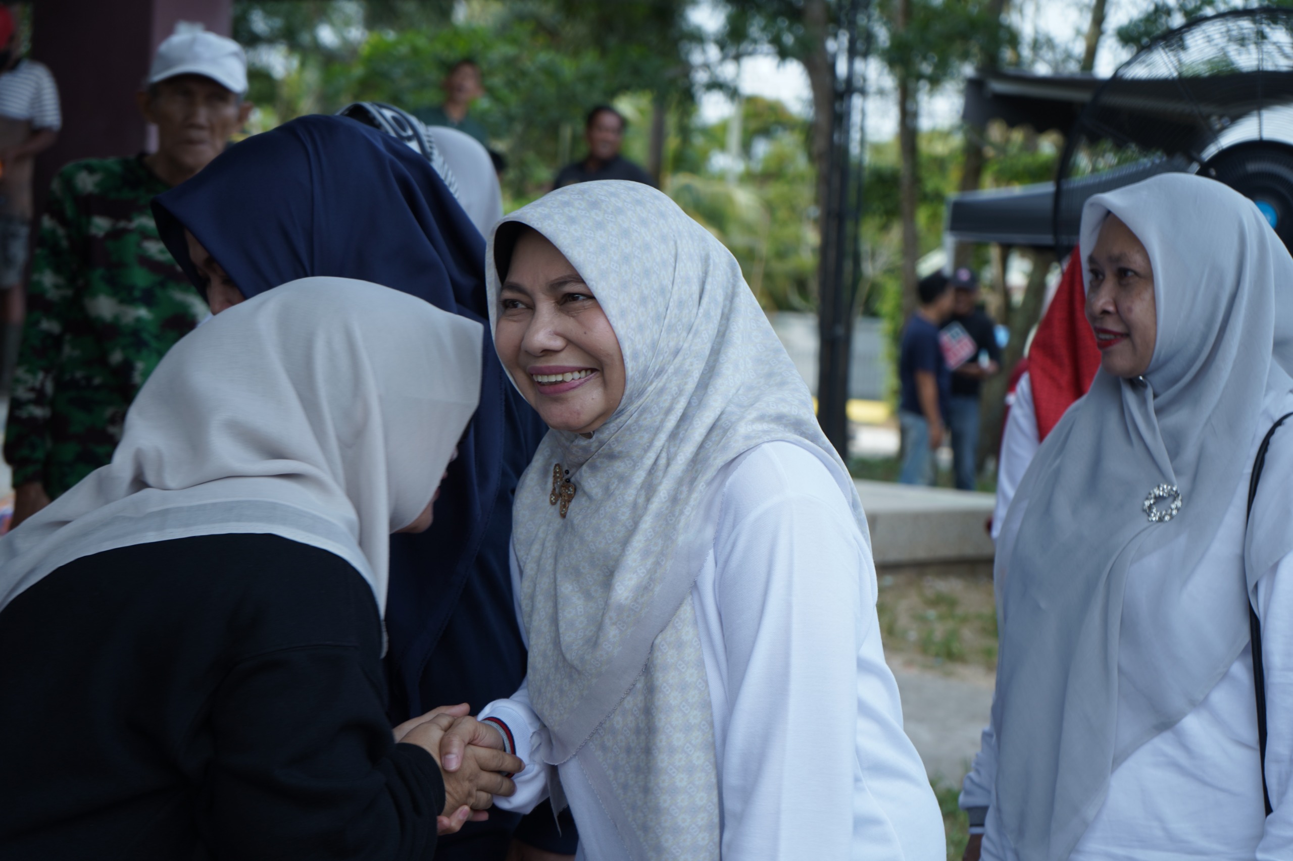 Menambah suka cita acara, Bupati Herman menyempatkan diri mengayuh becak dengan sang Istri Katerina Susanti sebagai penumpangnya.