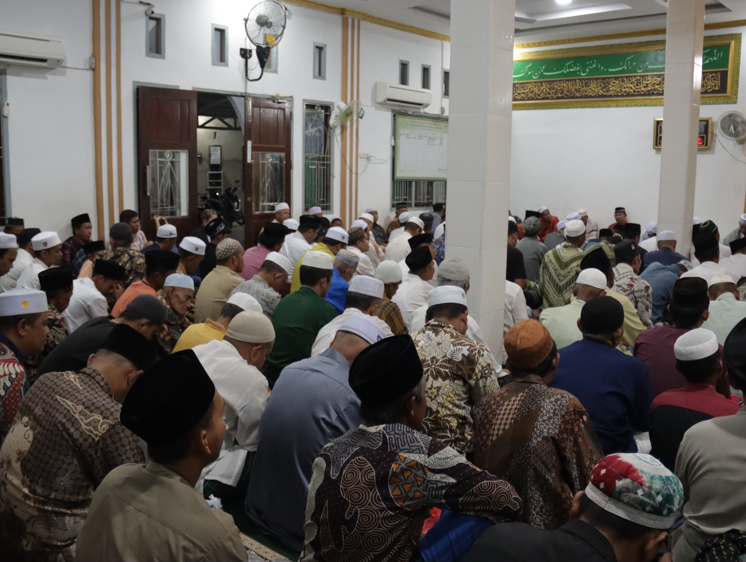 Acara peringatan Maulid Nabi di Masjid Darussalam Al-Mubin tersebut berlangsung khidmat dengan dihadiri jamaah, tokoh agama, dan masyarakat sekitar yang bersama-sama bershalawat serta mendengarkan tausiah.