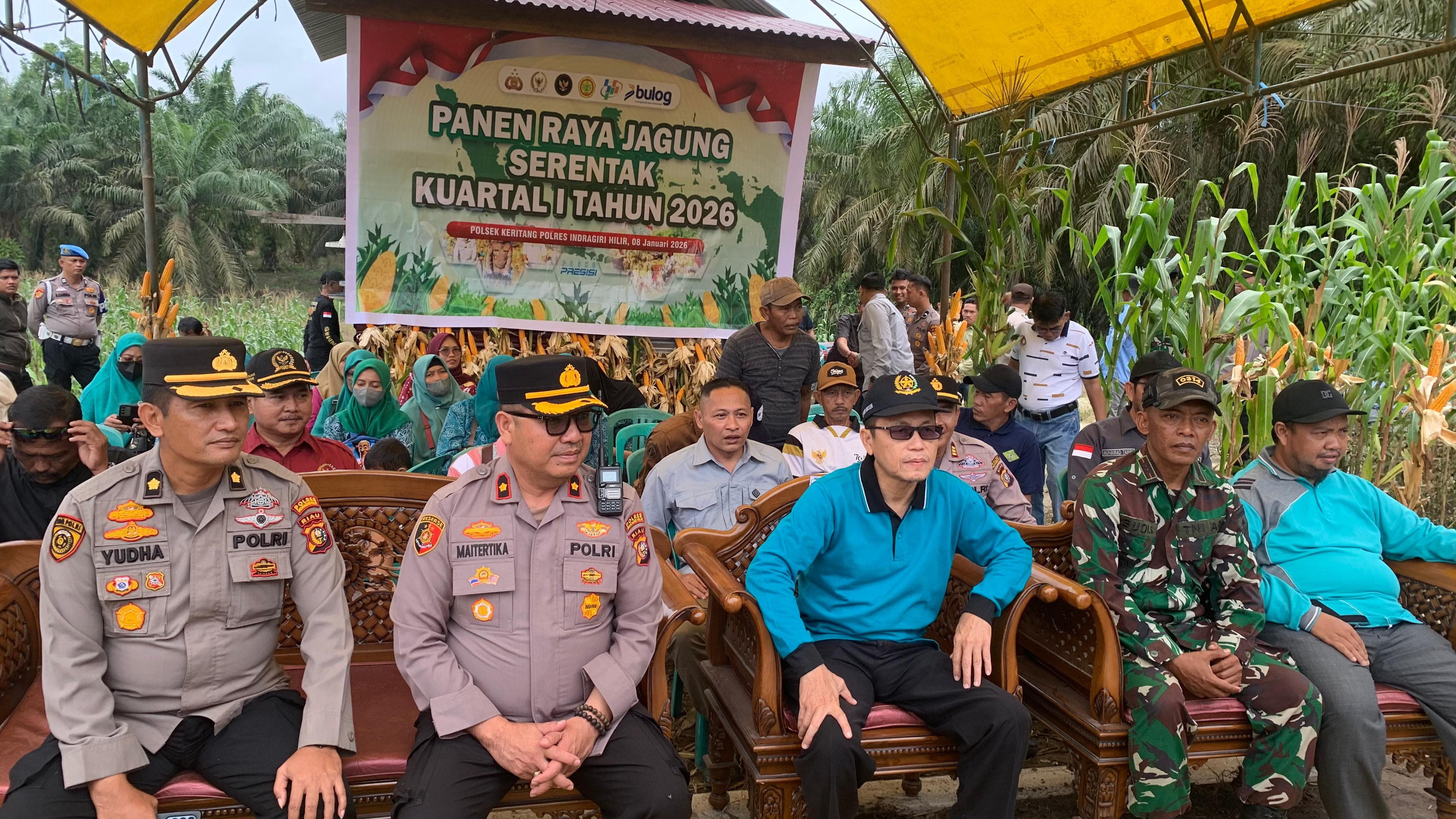 Keritang – Bupati Indragiri Hilir Herman, yang diwakili Asisten I Bidang Pemerintahan dan Kesejahteraan Rakyat Setda Inhil, Fajar Husin, menyampaikan apresiasi kepada para petani dan seluruh pihak terkait pada kegiatan Panen Raya Jagung Serentak Kuartal I yang dilaksanakan di Desa Petalongan, Kecamatan Keritang, Kamis, 8 Januari 2026, sebagai bagian dari upaya mendukung swasembada pangan tahun 2026.
