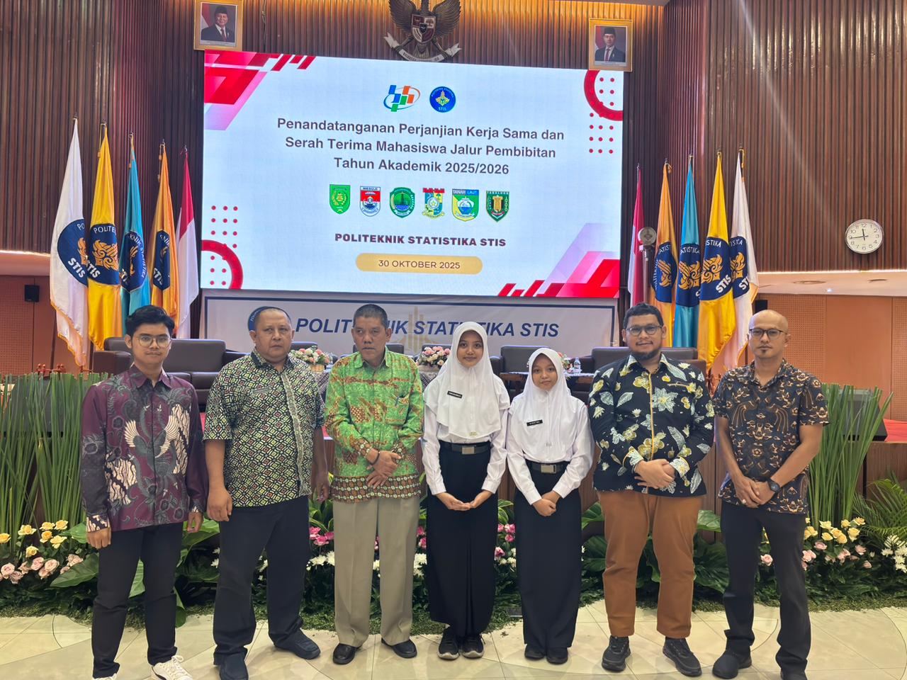 Pada kesempatan tersebut, turut diserahkan dua mahasiswa asal Kabupaten Indragiri Hilir yang diterima di Program Sarjana Terapan (D-IV) Statistik melalui jalur pembibitan, yakni Aishafina, lulusan MAN Tembilahan Tahun 2025, dan Tyara Salsabila Rustiandi, lulusan SMA Negeri 1 Tembilahan Tahun 2025.