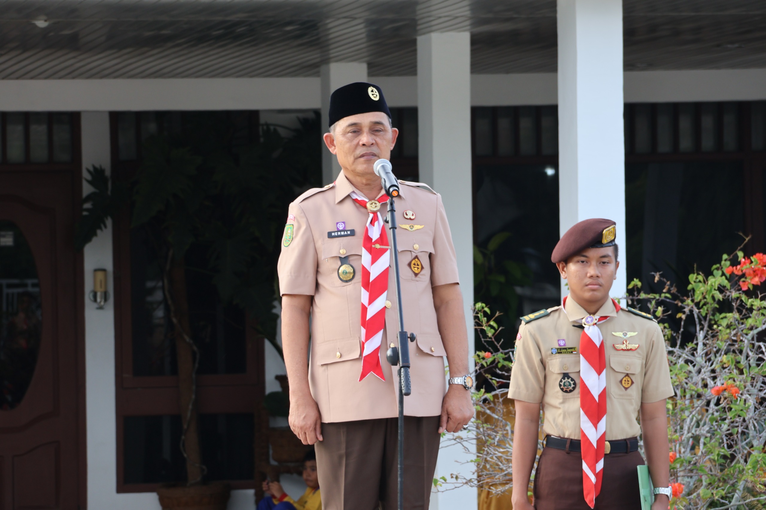 Saat memimpin Apel, Ketua Kamabicab Gerakan Pramuka Inhil, Bupati Herman, memberi amanat kepada seluruh anggota Pramuka untuk memaknai Upacara Gelar Senja sebagai momentum refleksi diri.