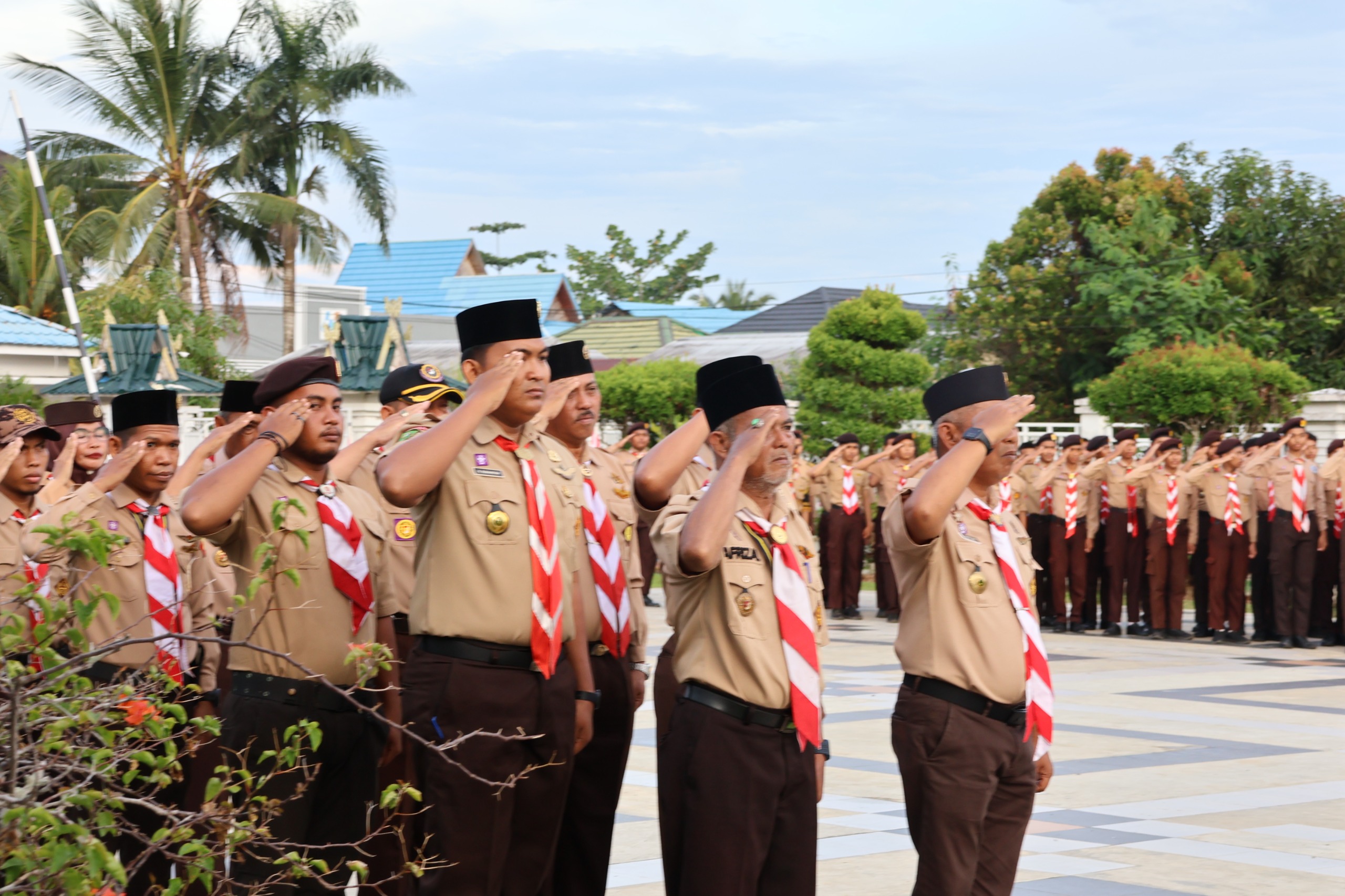 Apel yang berlangsung Selasa (14/10) petang di Halaman Rumah Dinas Bupati ini, diikuti Ketua Kwartir Cabang Gerakan Pramuka 04.02 Inhil Junaidi Ismail beserta pengurus, dan seluruh tingkatan dalam Gerakan Pramuka baik yang di Kabupaten maupun Perwakilan Kecamatan.