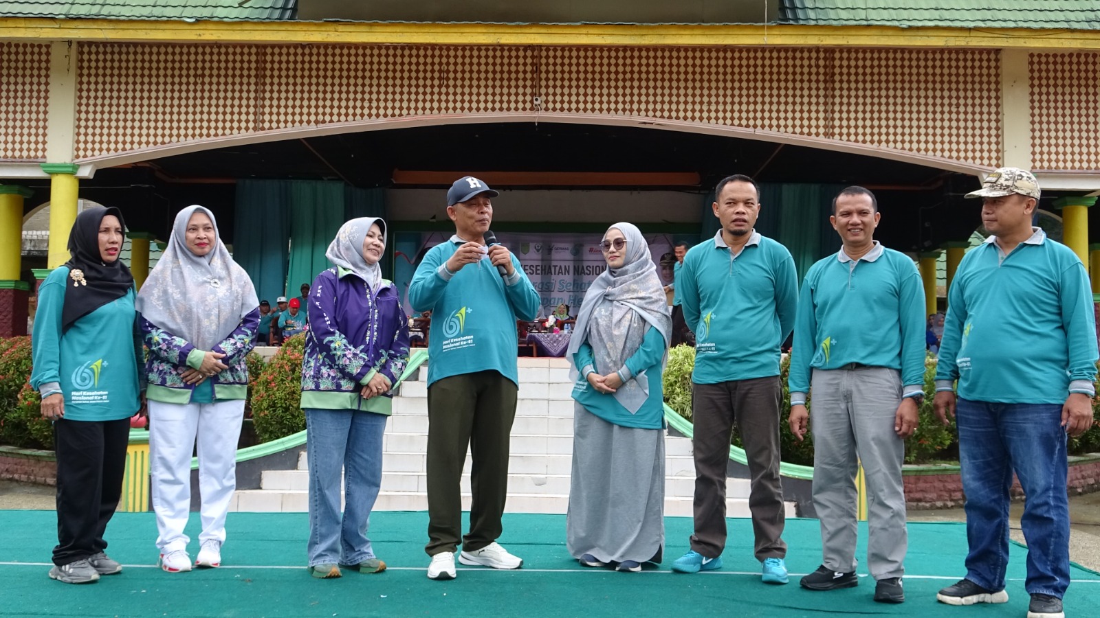 Bupati Indragiri Hilir (Inhil) Herman didampingi Ketua Tim Penggerak PKK Katerina Susanti, hadiri puncak perayaan Hari Kesehatan Nasional (HKN) 2025, yang berlangsung Sabtu (13/12) pagi, di Lapangan Gajah Mada Tembilahan.