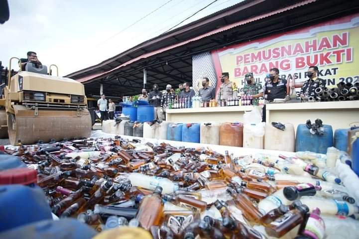 Acara diakhiri dengan pemusnahan barang bukti hasil operasi pekat lancang kuning tahun 2022 dan penandatanganan berita acara pemusnahan barang bukti oleh Bupati HM. Wardan bersama unsur Forkopimda.
