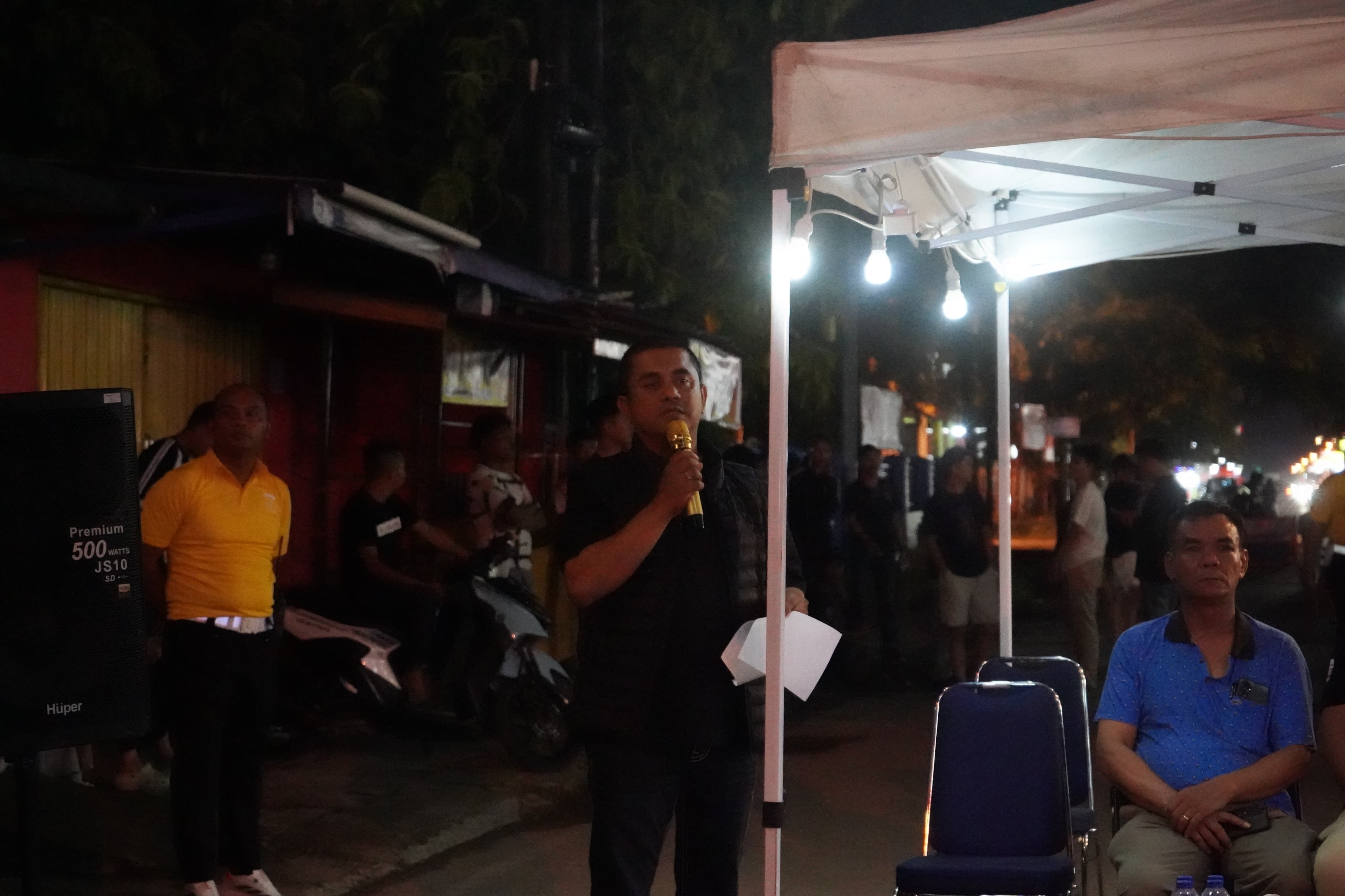 Dukungan ditunjukkan, dengan hadirnya Asisten Ekonomi dan Pembangunan Setda Inhil, Dwi Budianto, menyaksikan secara langsung giat yang berlangsung pada Jumat (13/3) malam di Jalan M. Boya tersebut.