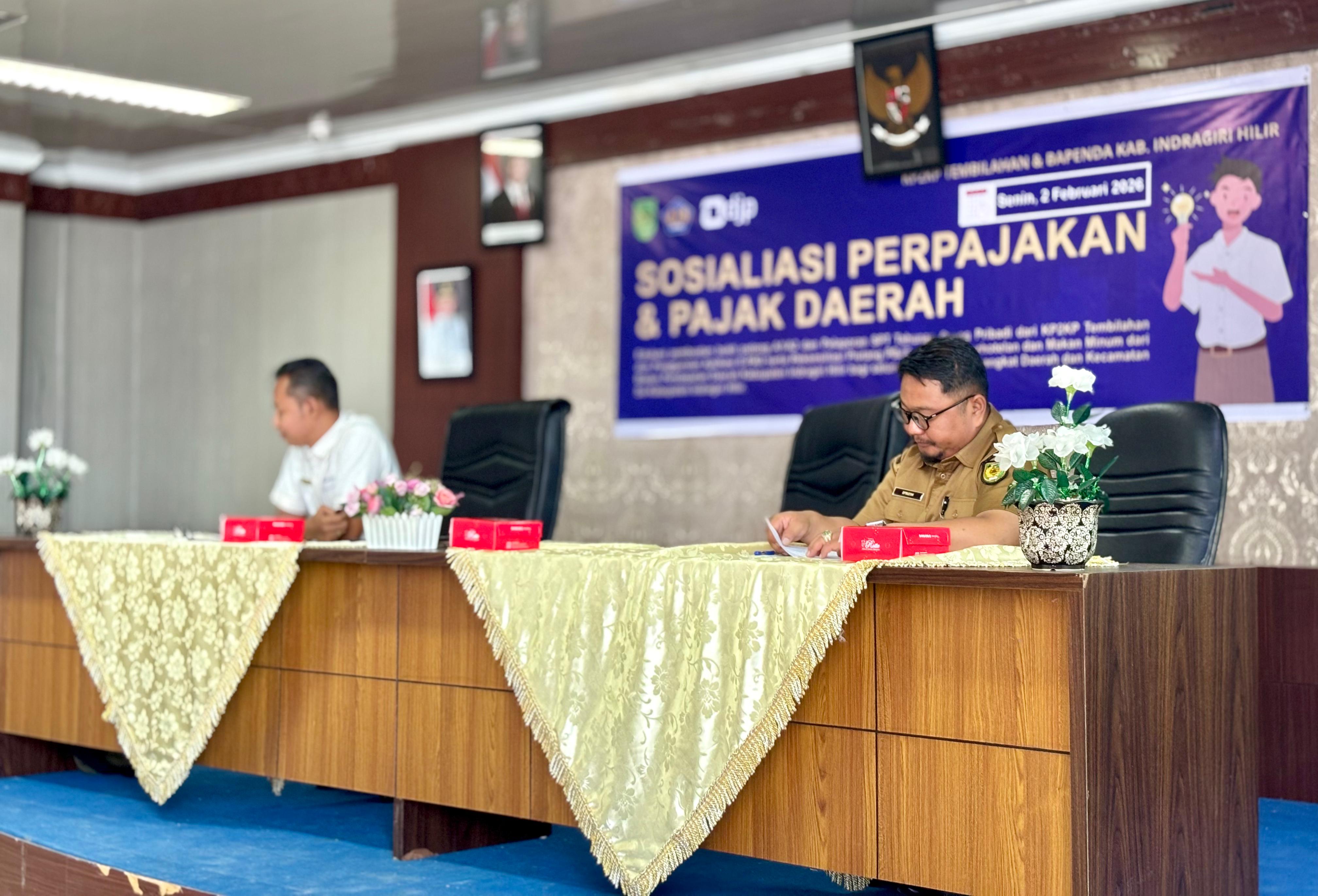 Tembilahan – Pemerintah Kabupaten Indragiri Hilir (Inhil) melalui Badan Pendapatan Daerah (Bapenda) Kabupaten Inhil bekerja sama dengan Kantor Pelayanan Penyuluhan dan Konsultasi Perpajakan (KP2KP) Tembilahan menggelar Sosialisasi Perpajakan dan Pajak Daerah, di Aula Kantor Bapenda Inhil, Jalan Hang Tuah Tembilahan, Senin (2/2/2026).
