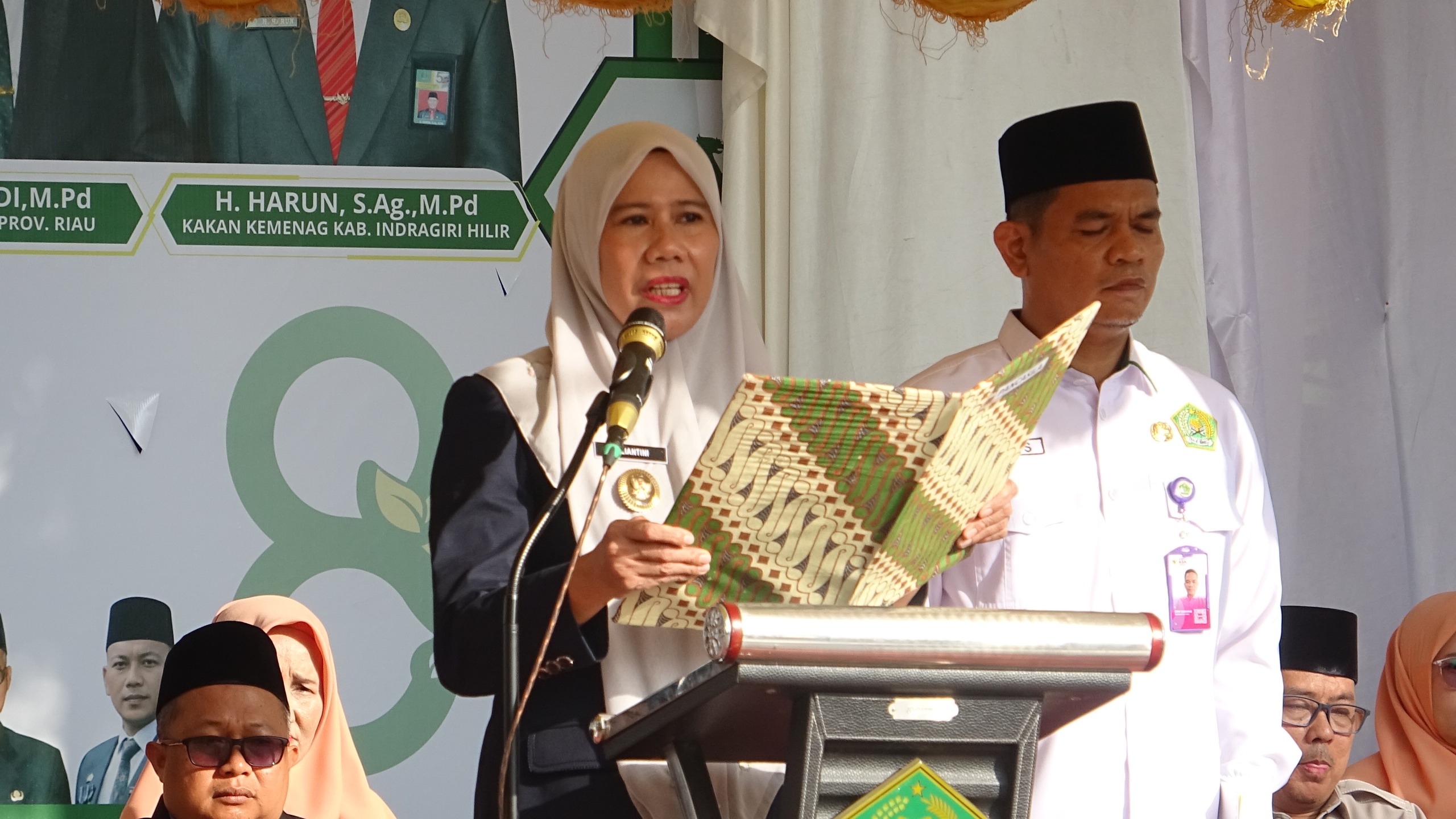 Wakil Bupati Indragiri Hilir (Inhil) Yuliantini, pimpin Upacara Hari Amal Bakti (HAB) Kementerian Agama (Kemenag) Republik Indonesia ke - 80 yang digelar di Kantor Kemenag Inhil, pada Rabu (7/1) pagi.