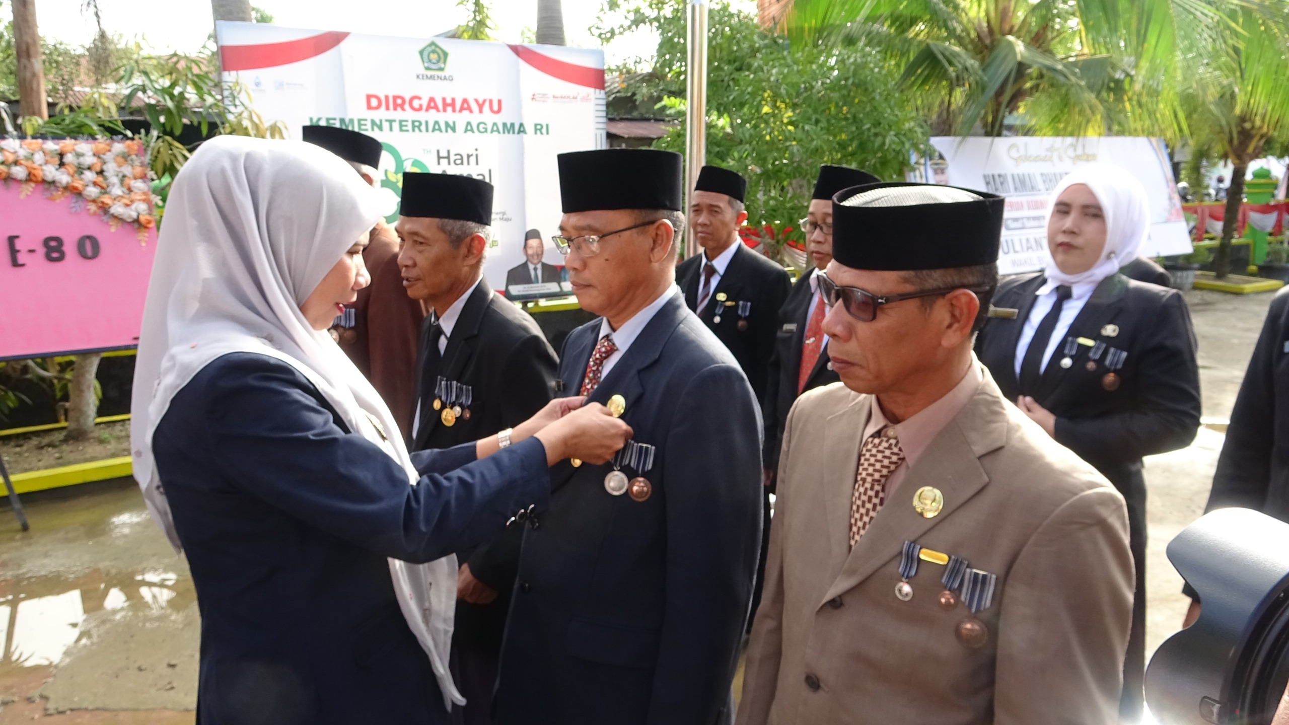 Usai pelaksanaan upacara, rangkaian peringatan Hari Amal Bakti dilanjutkan dengan penyerahan penghargaan Satyalancana Karya Satya kepada ASN di lingkungan Kemenag Inhil.